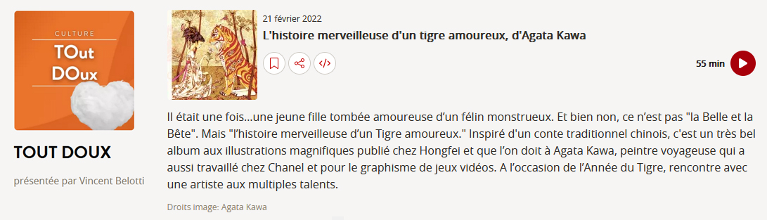 Illustrations et Thème du livre /Maquette et Graphisme : Agata Kawa, Texte : Mon ami Benjamin LacombeHistoire Merveilleuse d'un Tigre Amoureux